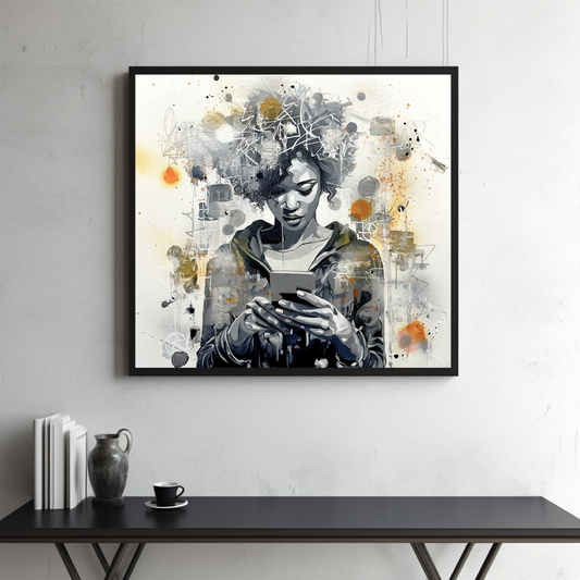 " The Captive of social media " original artwork - acrylic on canvas 60 x 60 cm
